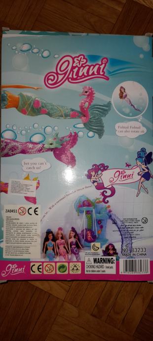 Prodajem lutku sirene s pokretnim repom. Lutka se može koristiti u vodi. Sirenin rep je napravljen od gume i ukrašen morskim motivima. Uz sirenu dolazi i figurica sireninog prijatelja, malog morskog konjica. Lutka i njezin prijatelj su izvrsnom stanju. Vrlo malo korišteno.