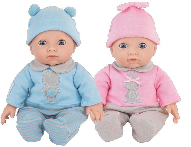 My First Tiny Treasures twin dolls are just the cutest little ones. Little sister is wearing a pink outfit and little brother a light blue outfit.My First Tiny Treasures dolls are created to be loved deeply, just like all other babies. Your new baby dolls have a soft body so they can be hugged and when you put them to sleep, they close their eyes. (The dolls measure 28 cm). Age 1+Content:2 x My First Tiny Treasures twin dollsProduct Size: 16x28x19 cm