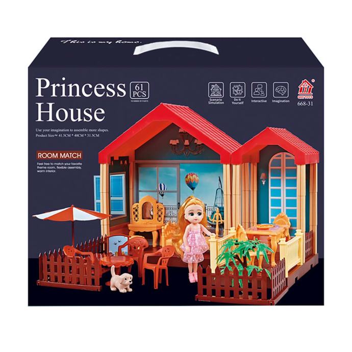 Princezina kućica set je san svake male djevojčice koja želi stvoriti svoj čarobni svijet pun kreativne zabave. Ova šarmantna kućica nudi mnoge interaktivne mogućnosti koje će razbuktati maštu i oduševiti vašu djevojčicu. Set sadrži sav potreban pribor za uređenje kućice, npr. dnevnog boravka, spavaće sobe i vrta. Zahvaljujući tome, djeca mogu izmišljati razne priče, organizirati zabave s lutkama i glumiti svakodnevne situacije iz života ukućana.
