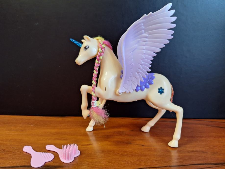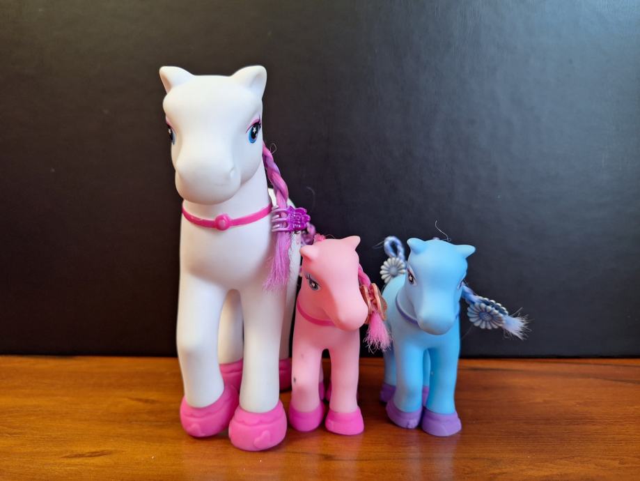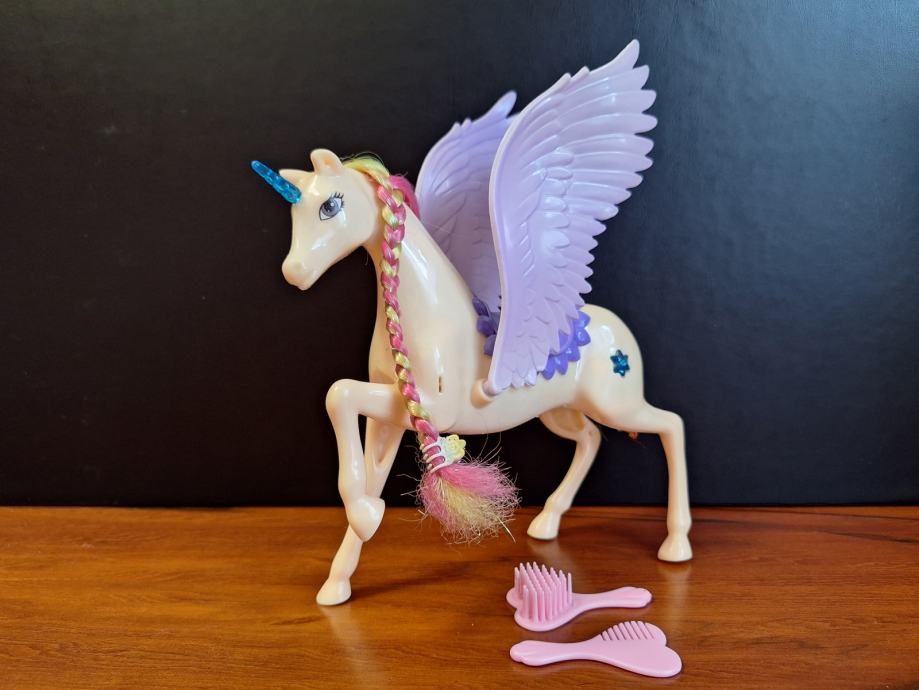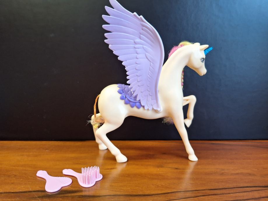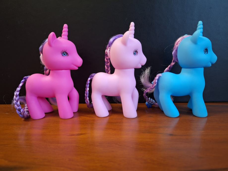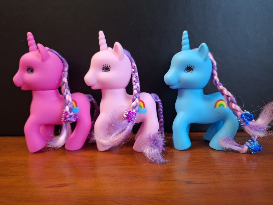 U setu dolaze: kočija, veliki bijeli poni, 2 mala ponija (plavi, rozi), 2 češljića, veliki krilati jednorog, 3 raznobojna jednoroga.