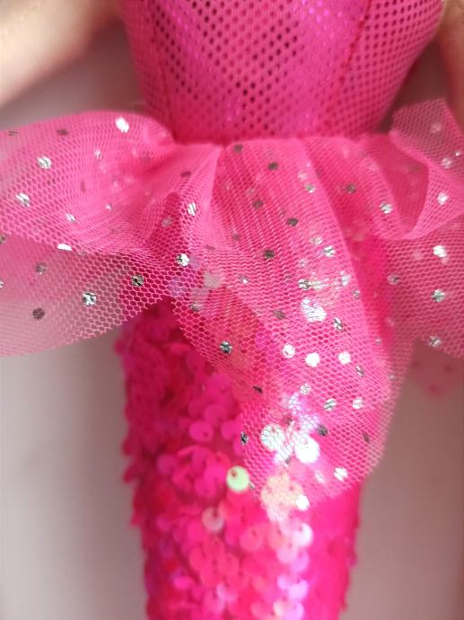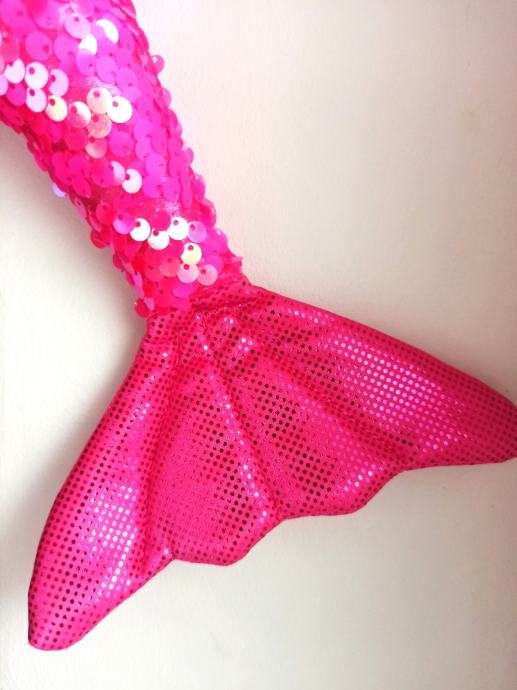 Kosa od valovite vune, dodaci od šljokastog tila i spektakuli rep sa šljokicama.