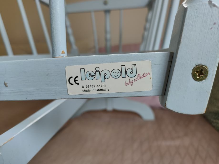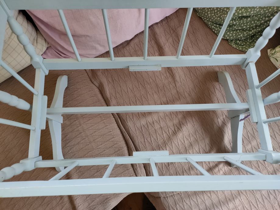 Velika kolijevka za lutke (65cmx45cmx30cm veličina kolijevke, a visina sa stalkom je 56 cm) Kolijevka je njemačke proizvodnje - tvrtka Leopold i u odličnom je stanju. Nedostaje dno odnosno podnica. To može biti obična šperploča te veličine. Zbog veličine ne mogu slati već samo moguća dostava u Karlovcu, Zagrebu, Samoboru ili Jastrebarskom.