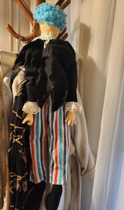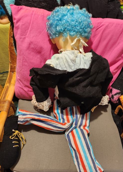 Stara dugačka lutka od 80 cm sa glavom i rukama od gume i tijelom punjenim od krpe u orginal odjeći