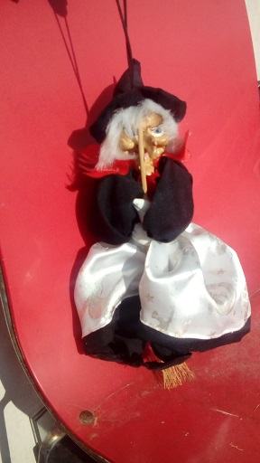 Vještica plastićna obuččena u sašivene krpene haljine sa konopcem za objesiti u auto ili negdje u kući