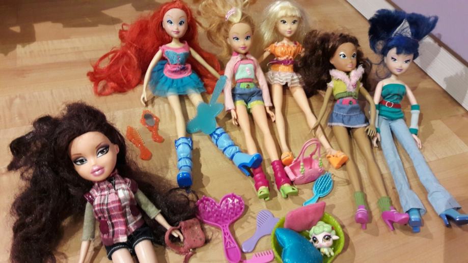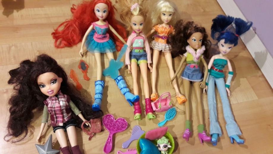 Winxice 5 kom i 1 Bratz lutka, sa pripadajućim detaljima.