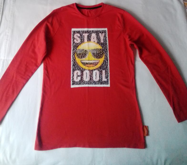 2+1 gratis!Nova "Emoji" crvena majica, s "ljuskicama", vel.164(16 god)