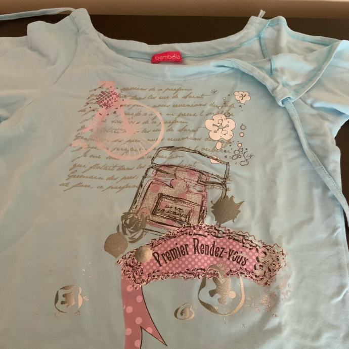 Prodajem dječju majicu Bambola br. 10, svjetloplave boje sa raskošnom slikom