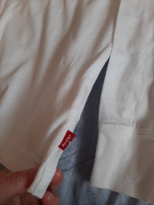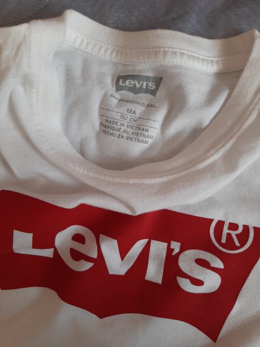 Bijela pamučna dječja majica dugih rukava Levis. Nošena svega dva puta, bez ikakvih oštećenja. Vel. 152. Dužina od vrha ramena do dolje 59cm, širina od pazuha do pazuha 43cm, dužina rukava od pazuha do dolje 44cm