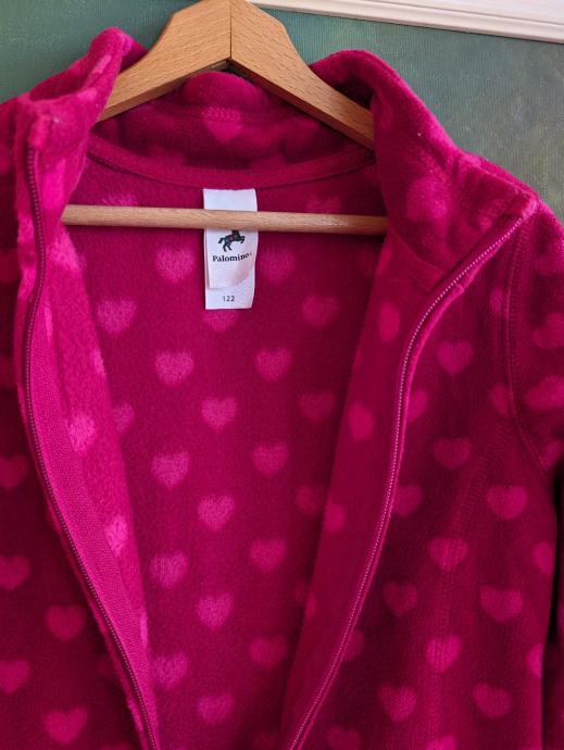 Fleece flis majica na kopčanje / jakna za curice br. 122, marka Palomino, s motivom srca, očuvana, topla i jako udobna, paše na sve i lijepo stoji.