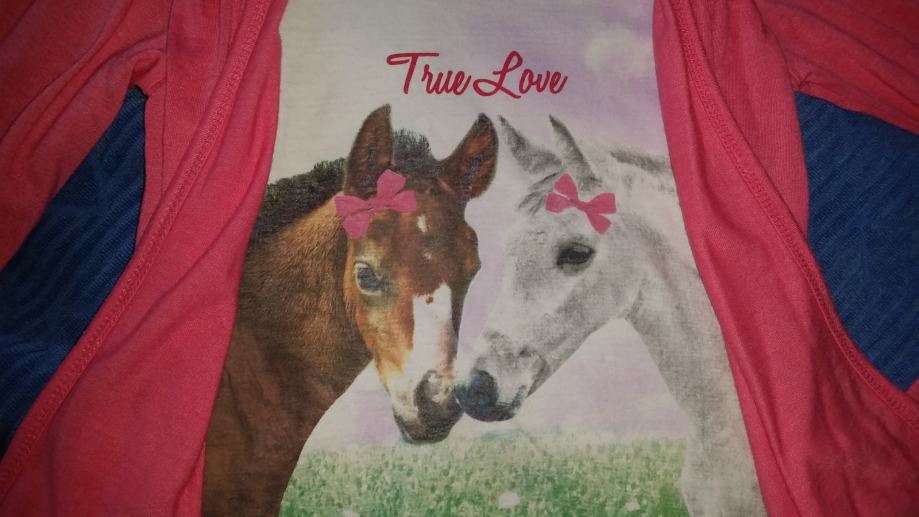 Prodajem predivnu majicu izgleda kao da ima dva sloja sa slikom konja.Očuvana bez oštećenja.4€