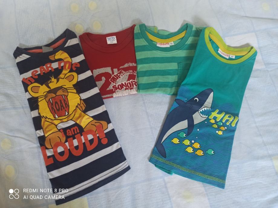 Majice kratkih rukava. Veličina 92. Odlično stanje. Nosilo jedno dijete. Četiri majice za 30 kn, ili svaka za 10 kn.