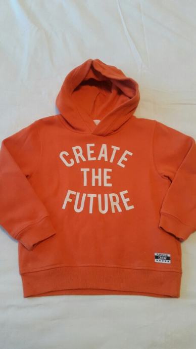Dječja duksa H&M. Boja narančasta. Veličina 110/116. Kapuljača podstavljena. Džepovi. Jako dobro očuvana, bez flekica i oštećenja.