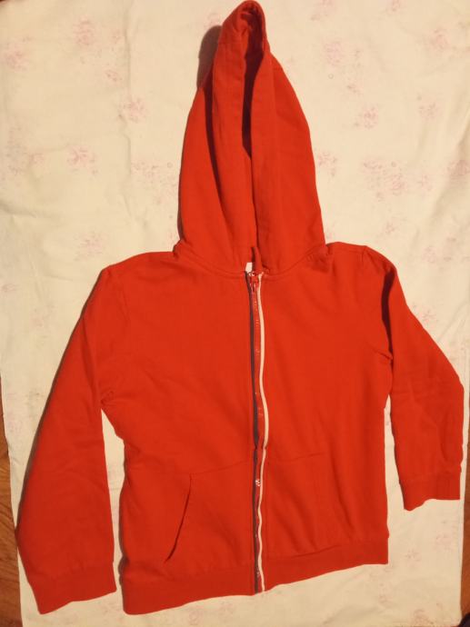 Crvena jakna s kapuljačom na patent vel 134, dužina 47 cm rukavi 40 cm