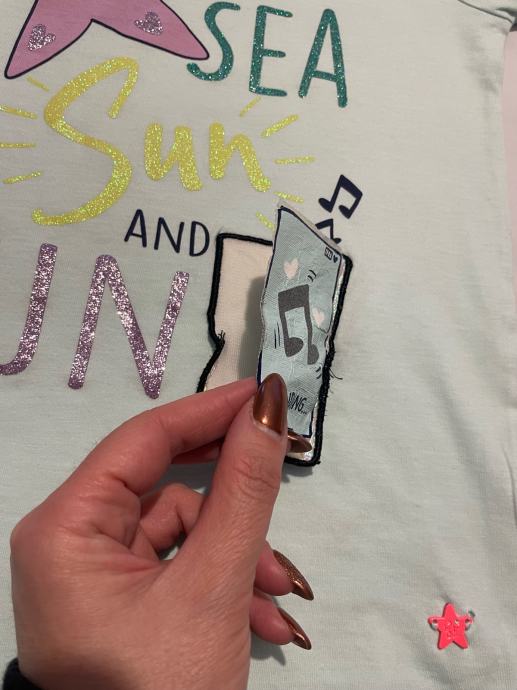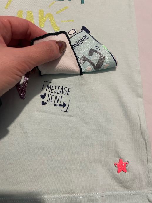 Majica kratkih rukava. Dio sa mobitelom nije bas u najizvrsnijem stanju al svejedno je stosno. Velicina 7/8