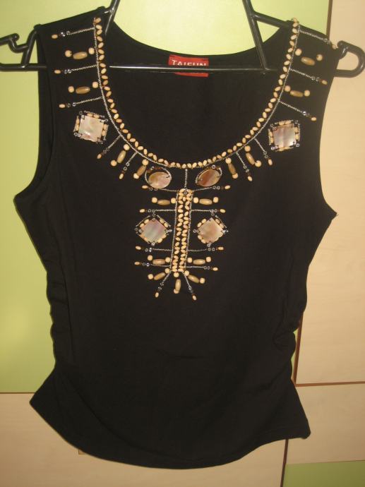 CRNA MAJICA S DRVENIM DETALJIMA VEL. 164/170/176 - NOVO