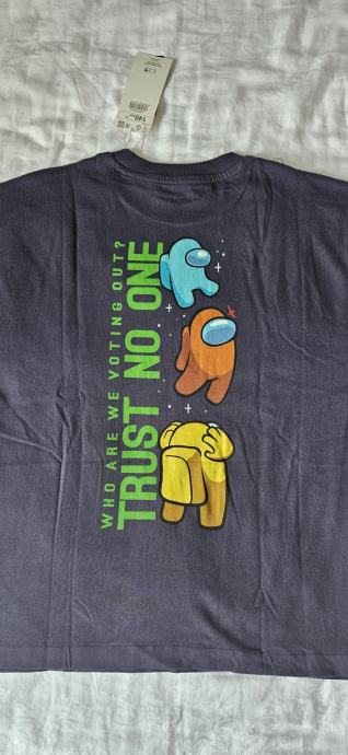 Potpuno nova i nikada nošena, još s etiketom, majica Reserved tamnoplave boje s natpisom Among Us. Pamučna, kratkih rukava, veličina 140.