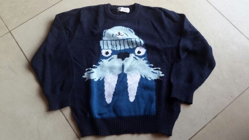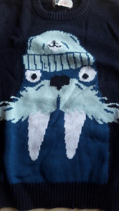 Dječja vesta H&M sa slikom morža. Veličina 98/104. Pamuk. Boja tamno plava. Jako dobro očuvana, bez flekica i oštećenja.