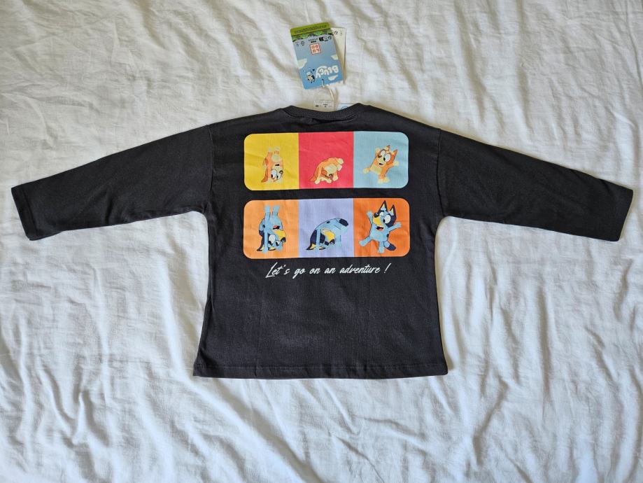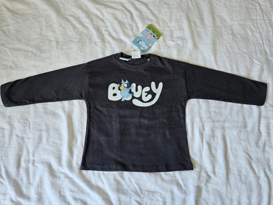 Nova i nikada korištena, još s etiketom, Zara pamučna majica dugih rukava tamnosive boje s detaljom Bluey od naprijed i odostraga. Veličina deklarirana 98, no doima se malo manjom 92 / 98.
