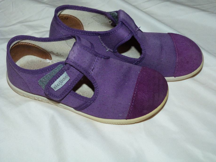 Poklanjam jednu desnu papuču Ciciban veličina 31, i lijevu papuču Ciciban veličine 32. Model ljubičaste jednobojne sa šljokicama. Dakle iste, ali različite veličine.