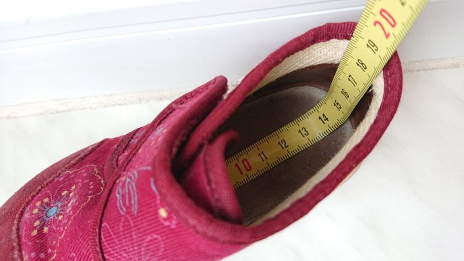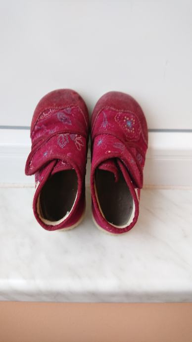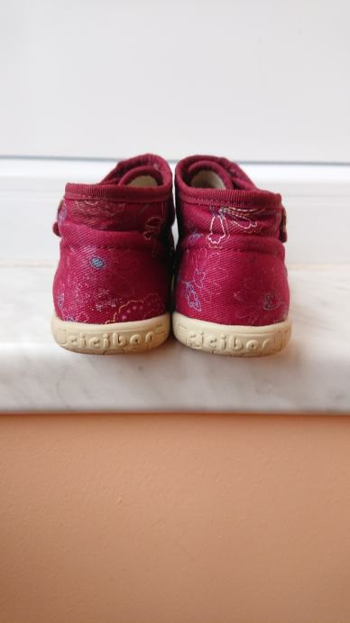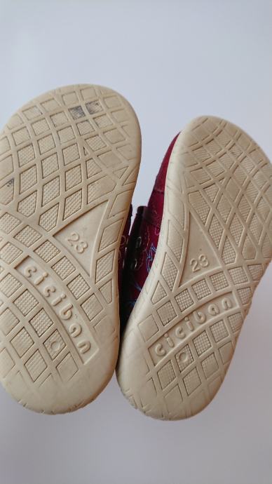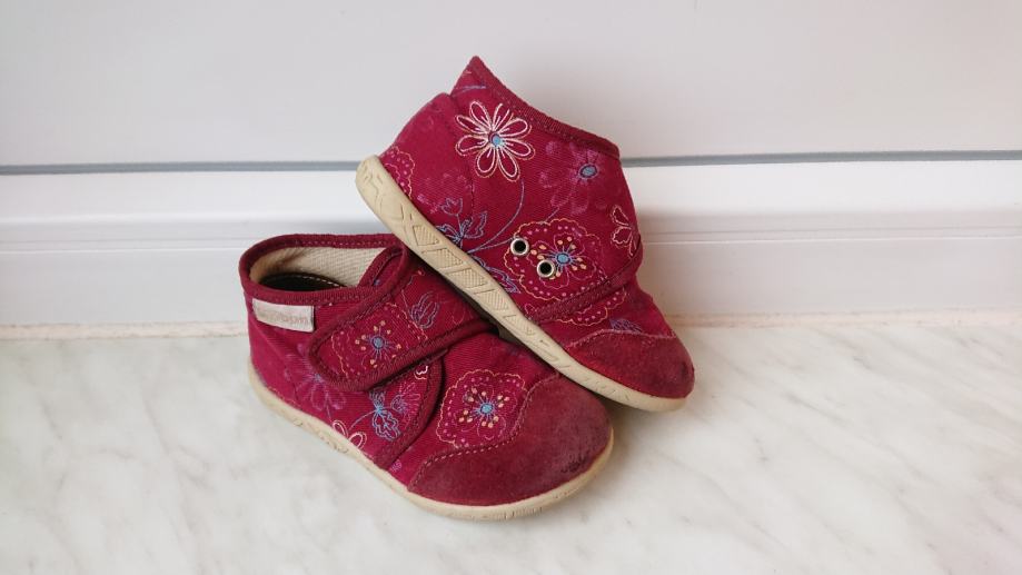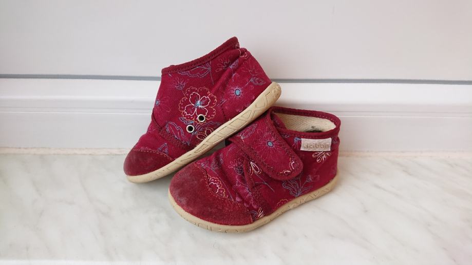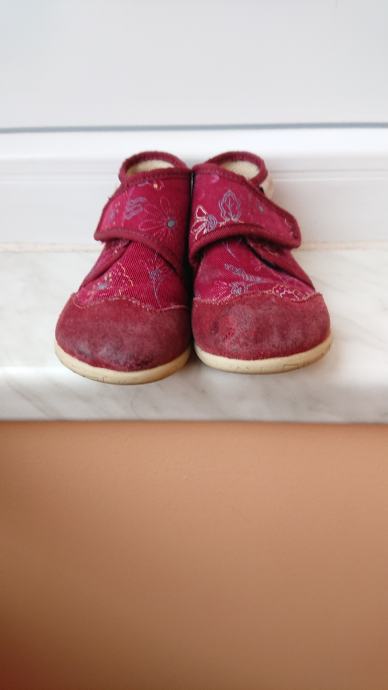 Ciciban šlapice / papuče br. 23, ug cca 14cm, kopčanje na čičak, pretežno tamnocrvene boje sa detaljima cvjetića, nošene, stanje vidljivo na slikama.