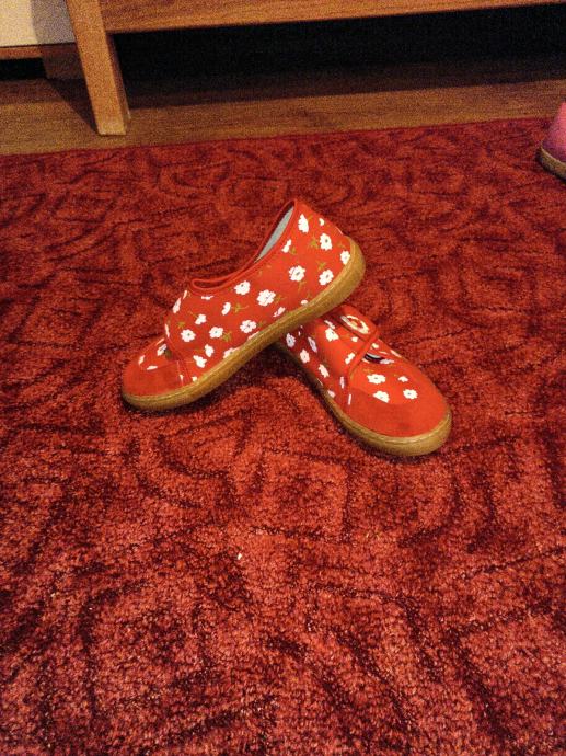 Prodajem dječje papuče broj 37. Crvena boja, udobne, čvrste, anatomski uložak, gumena podloga.