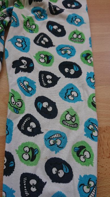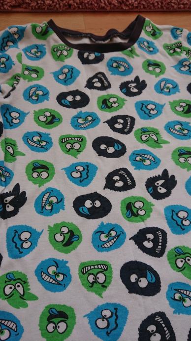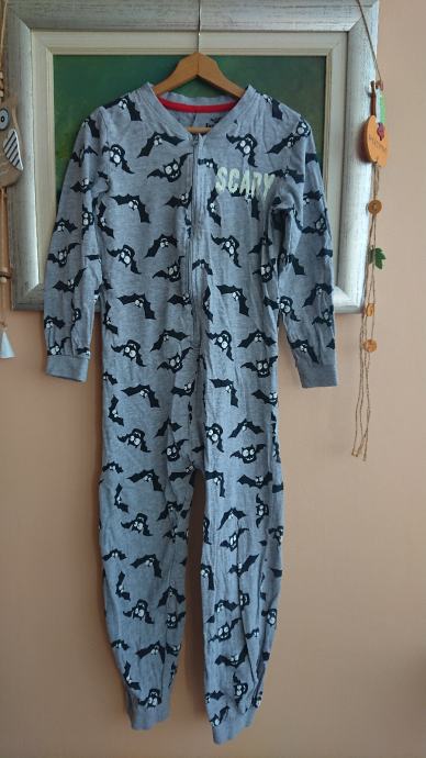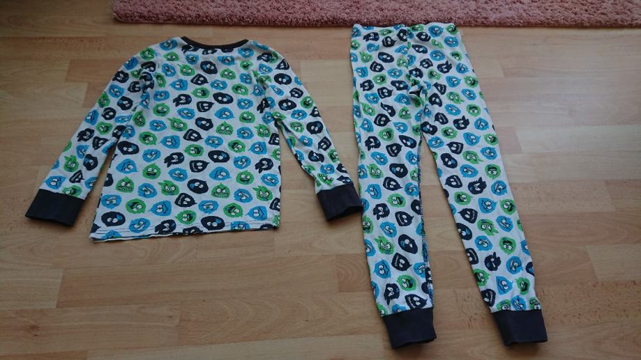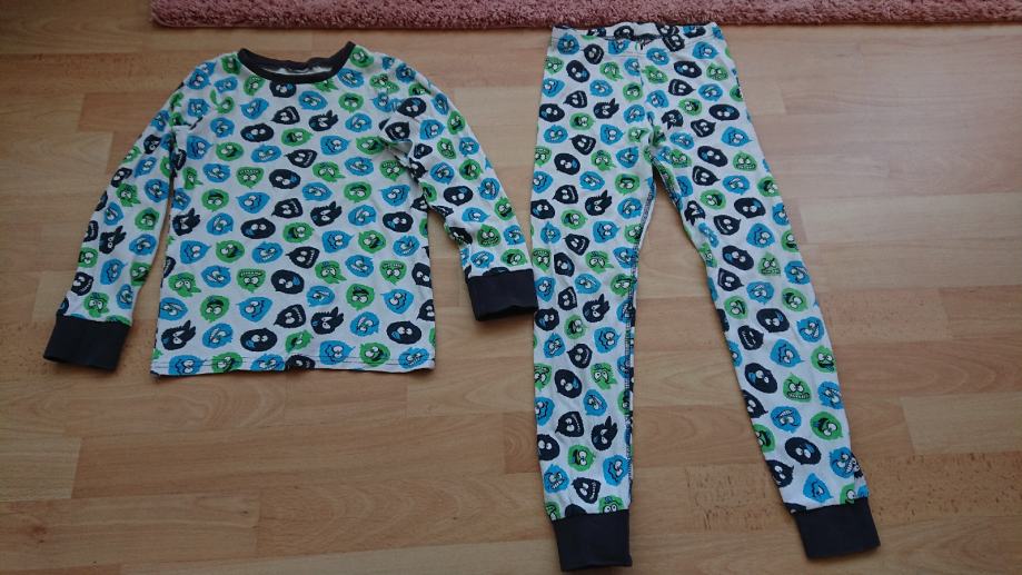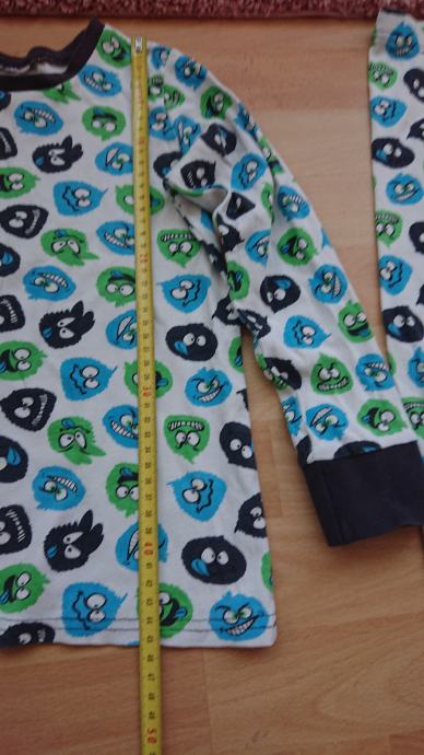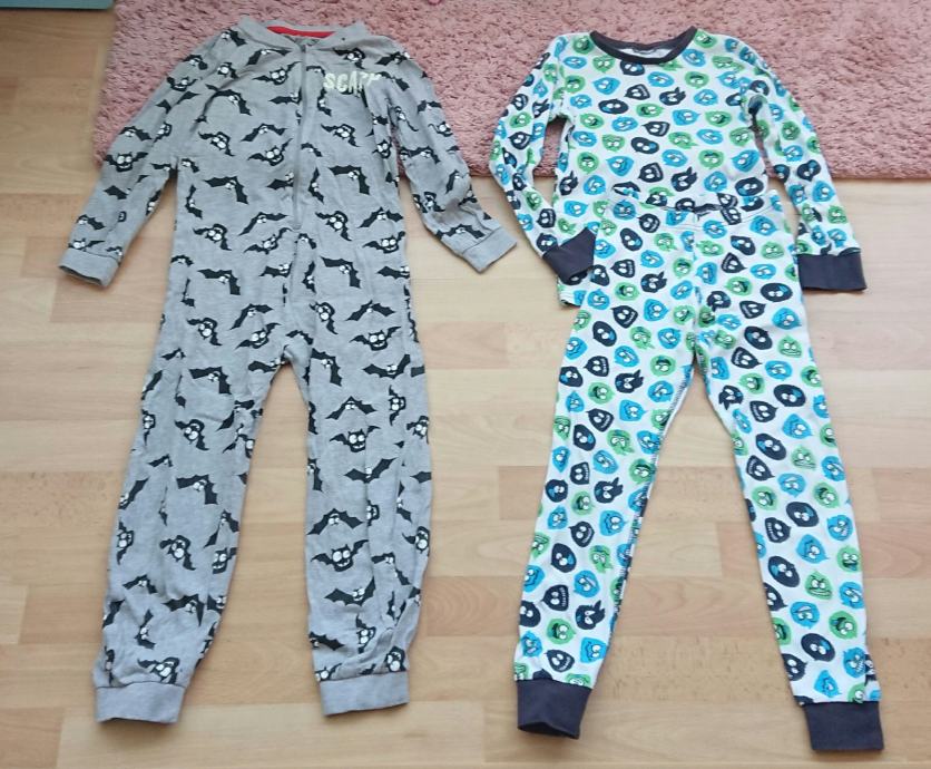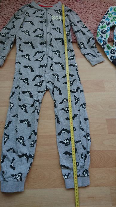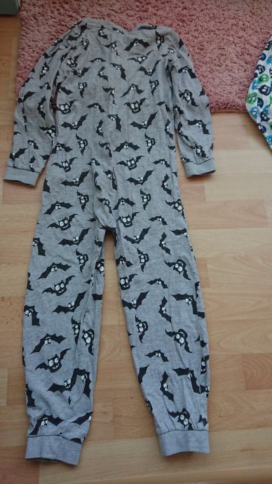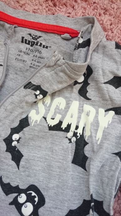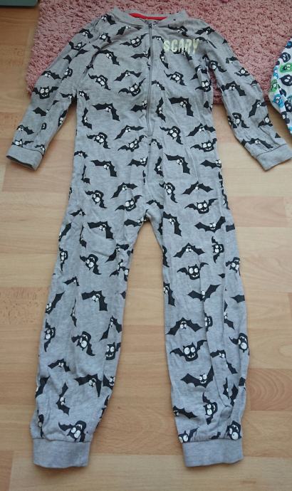 Pidžama 110 / 116, lot od dvije pidžame, jedna kao kombinezon, jednodijelna, odlična ako se dijete otkriva po noći, sa slovima SCARY koja lagano svijetle u mraku i motivima smiješnih šišmiša sa smiješnim facama, podsjeća na Hotel Transylvania crtić i druga dvodijelna sa raznim malim čudovištima koja također imaju razna smiješna lica, djeci zanimljiva.