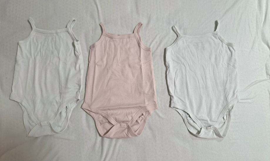 4 pidžame vel. 86 (plava kratki rukav te crvena, siva i roza sa srcima s dugim rukavima) i 3 bodija bez rukava u veličini 86/92. Sve je nošeno i očuvano.