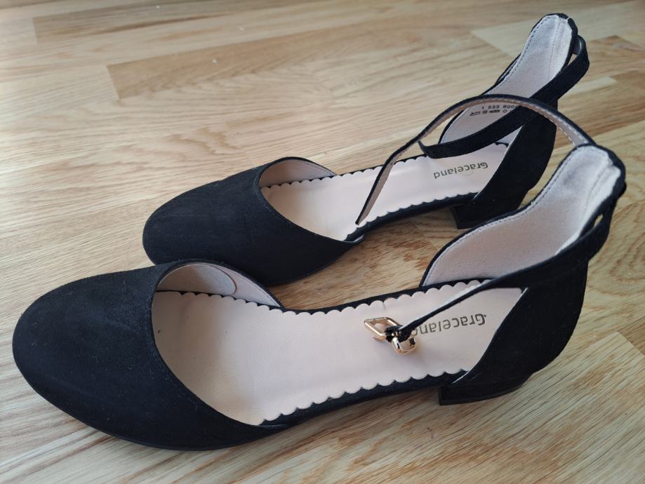 2. Crne klasične cipele/sandale s malom.petom( cca 2-3 cm.), br 35 ,jednom obučene, doslovno kao nove, prodajem za 7,99 Eura.
