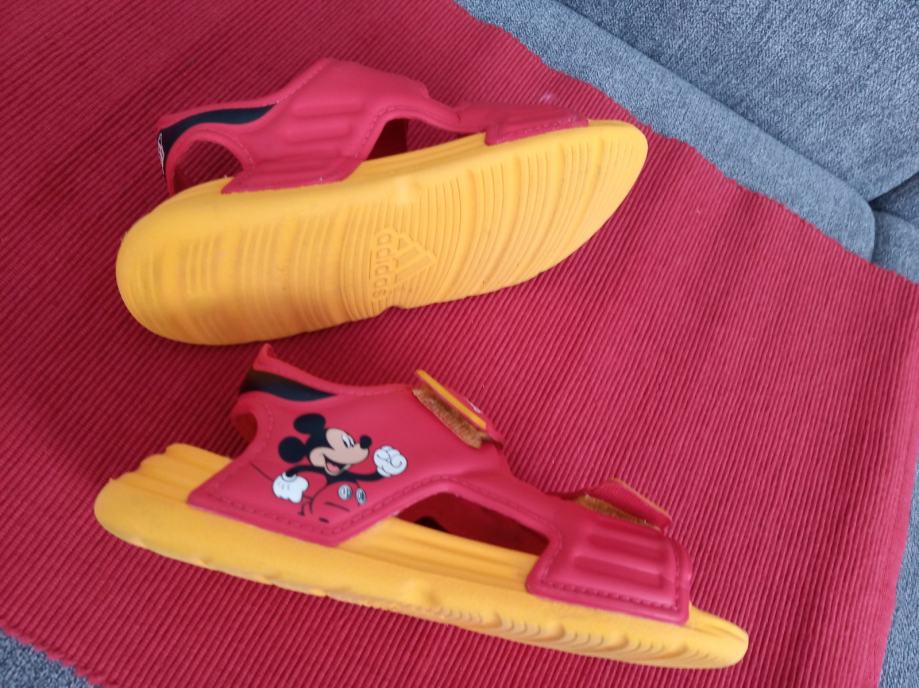 Dječje Adidas Disney crveno-žute sandale br.27 kao nove,unutarnje gazište 18 cm,na čičak(2 kom) Mickey Mause
