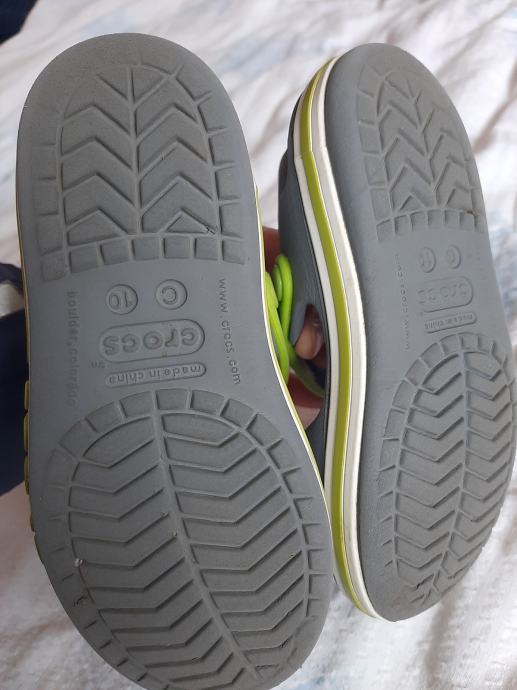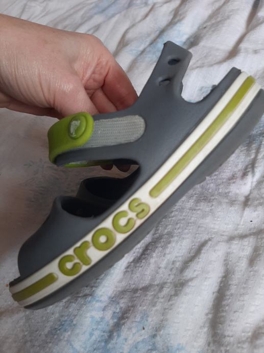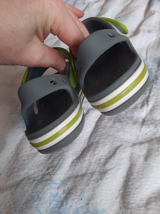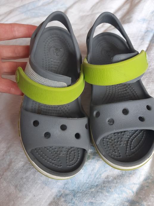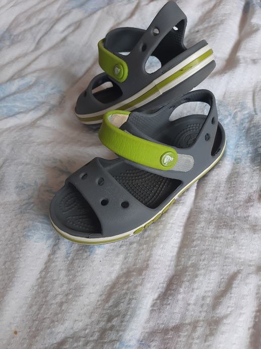 Sive dječje crocs sandale. Nošene vrlo kratko, bez ikakvih oštećenja. Vel. C10 (27-28), unutarnje gazište 16,50cm