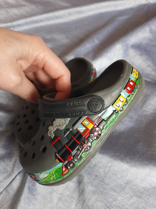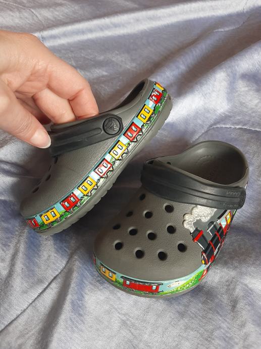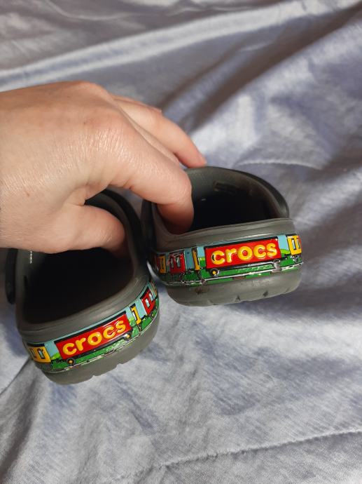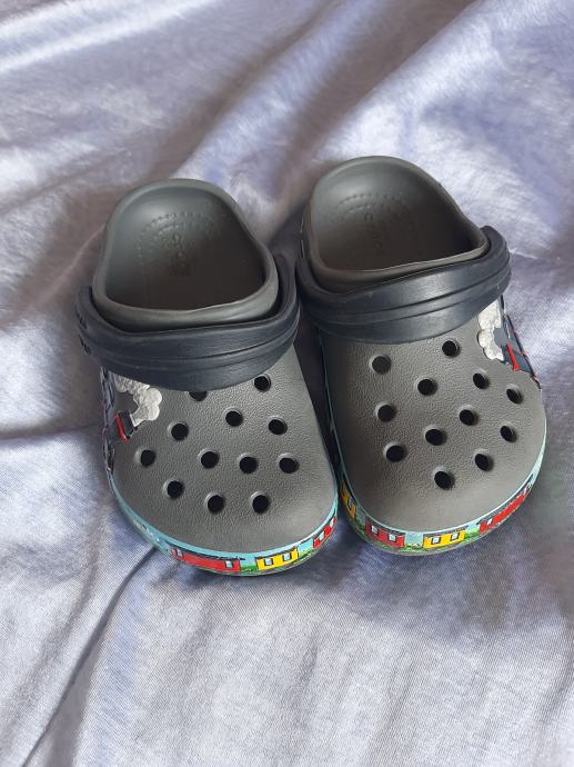 Sive dječje crocse Tomica i prijatelji, nošene vrlo kratko, bez oštećenja. Vel. C7 (23-24) , unutarnje gazište 14cm.