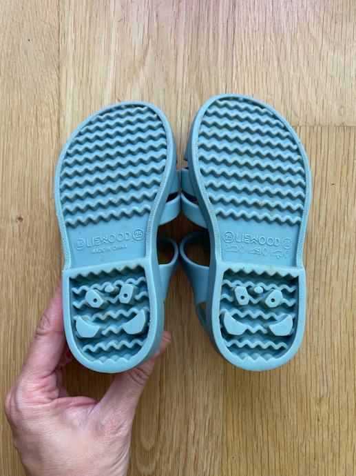Prodajem korištene mint Liewood plastične sandalice. Unutra imaju neke fleke, koje nisam stigla maknut ali se ne vide. Broj 25.
