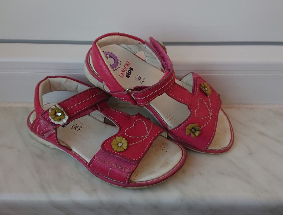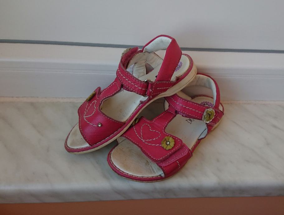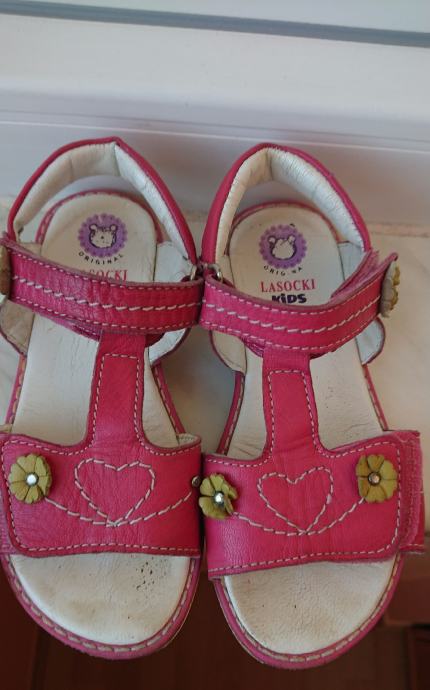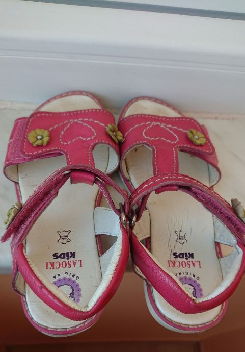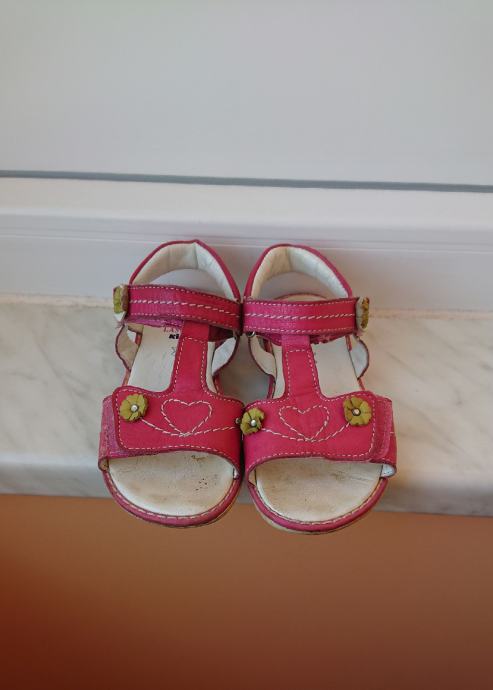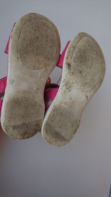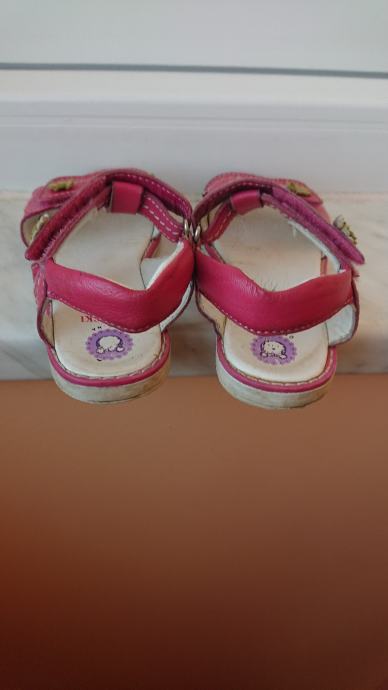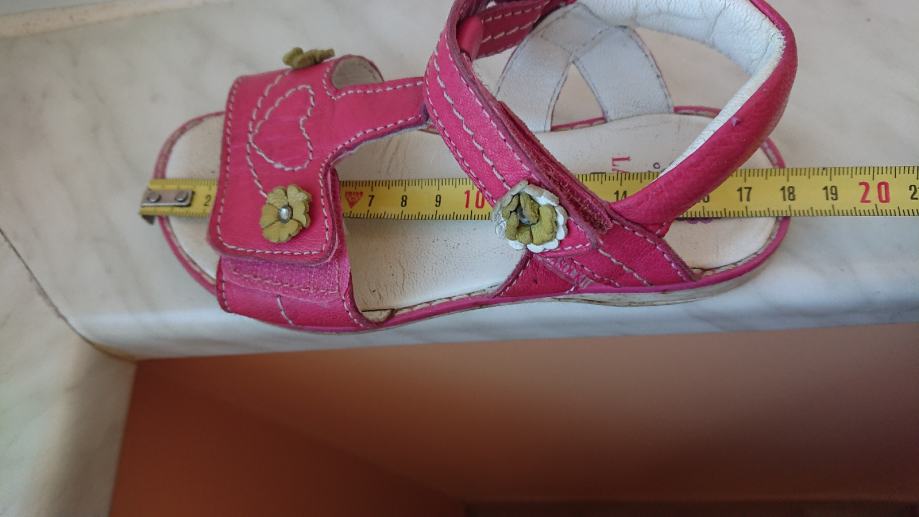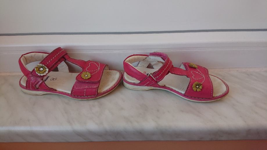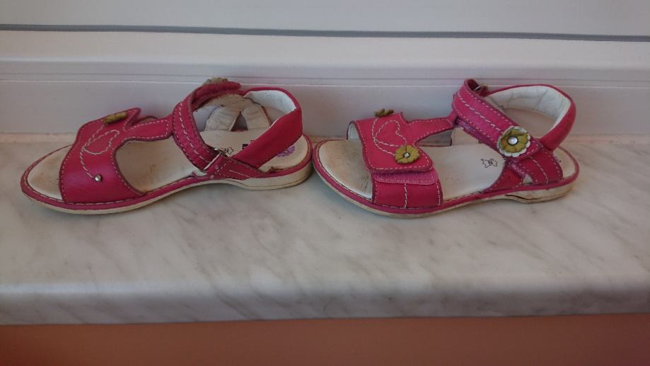Ljetne sandale za curice br. 27, ug cca 17cm, sa motivima cvjetića i svjetlucavim detaljima, kopčanje na dva čička tako da se mogu prilagoditi svakoj nogici.