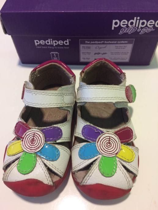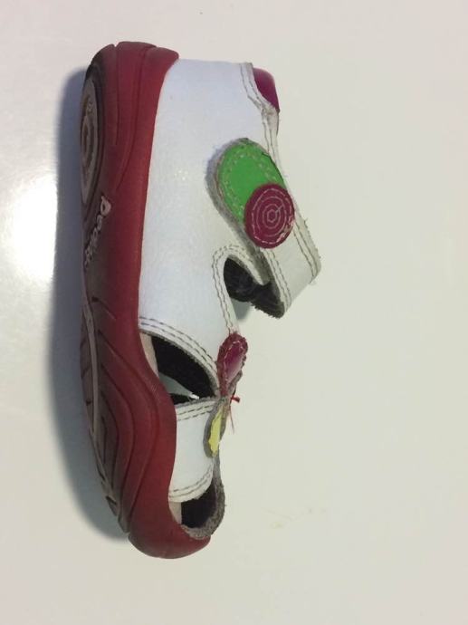 Izvrsne Pediped cipelice s rupicama (ili malo zatvorenije sandale), velicina 20. Kozne izvana i iznutra, djon je gumeni i jako elastican. Tabanica cipele je meka i udobna. Idealne za vrtic, jer nisu skroz zatvorene, a opet stite prstice od ozljeda u parkicu.