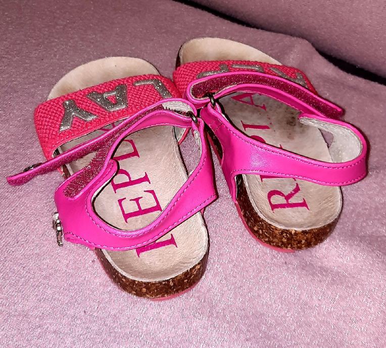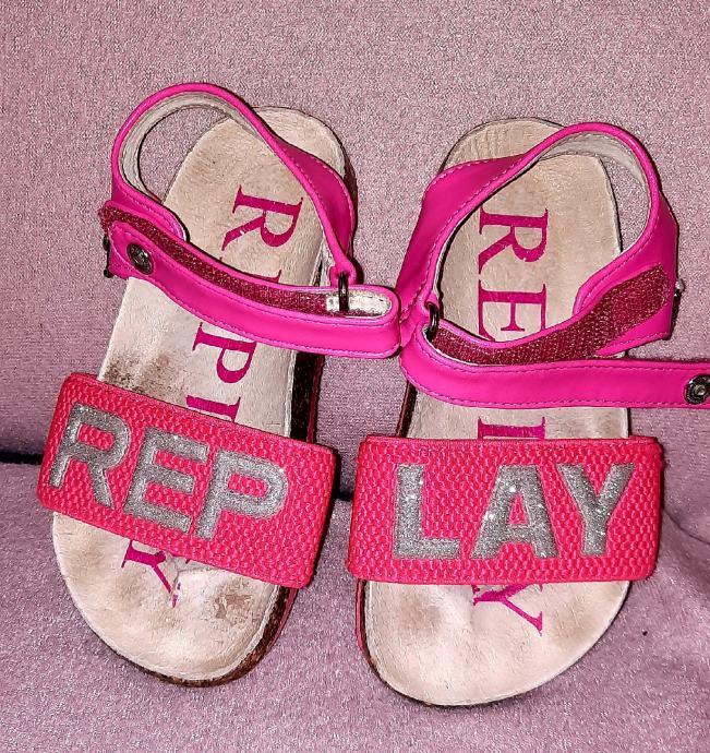 Replay&Sons roze sandale od tekstila za djevojčice velicina 26. Zakopčavanje s čičkom. S prednje strane REPLAY natpis te privjesak u obliku slova R na vanjskoj strani. Vide se tragovi nošenja unutra, osim toga stanje je dobro.