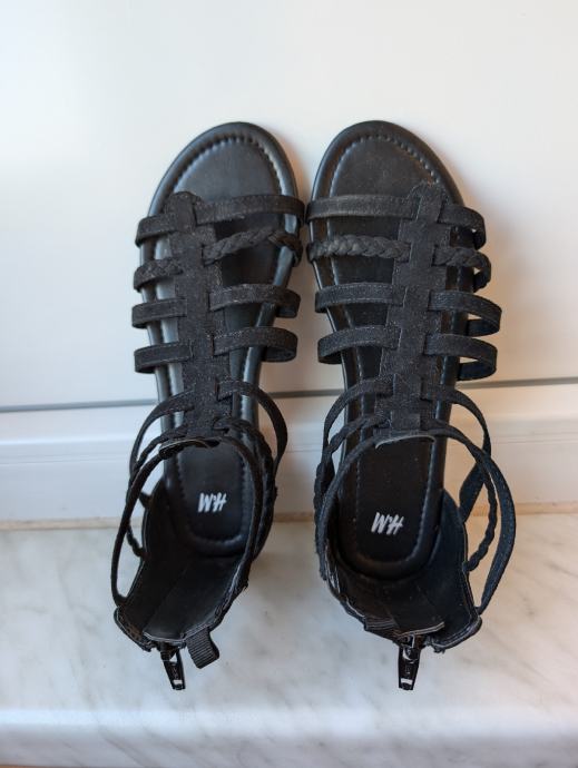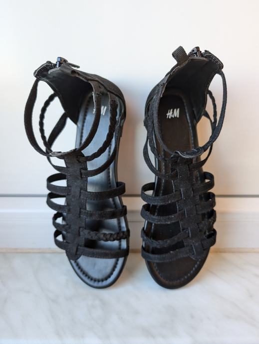 Sandale za djevojčice br. 37, H&M marka, crne boje, kopčanje na cif otraga, jako lijepo stoje, očuvane.