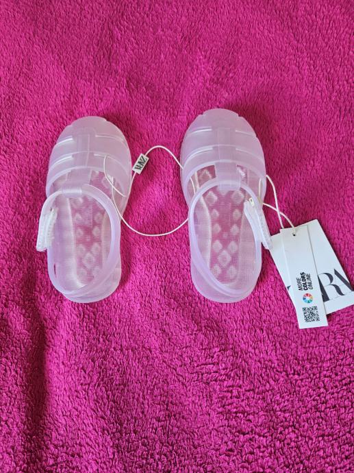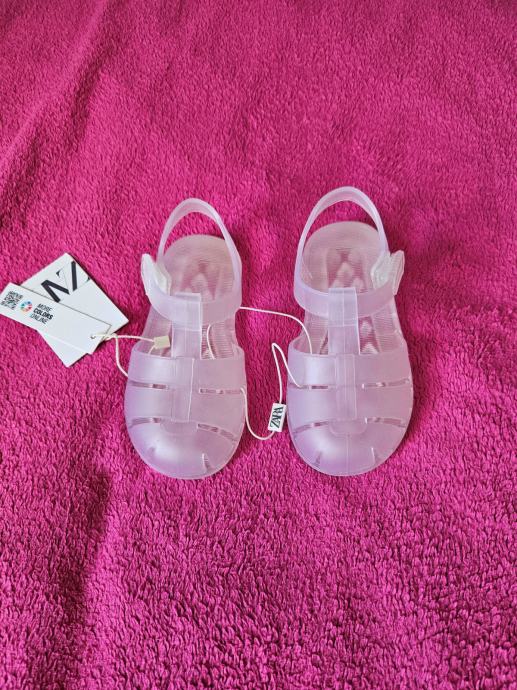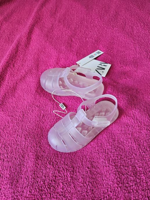 U potpunosti nove i nikada nošene, još s etiketom Zara gumene dječje sandale veličine 23, duljina gazišta 14,3 cm. Udobne, stabilan čičak. Boja je univerzalna, unisex, bjelkasta, lagano prozirna, tako da ih mogu nositi curice i dečki. Mogu u vodu.