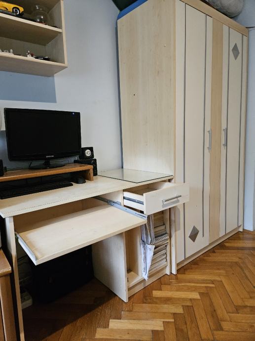 Očuvana unisex soba iz Lesnine za djecu i mlade s puno polica i skladišnog prostora.