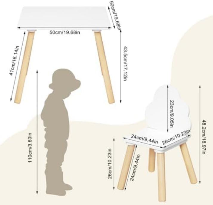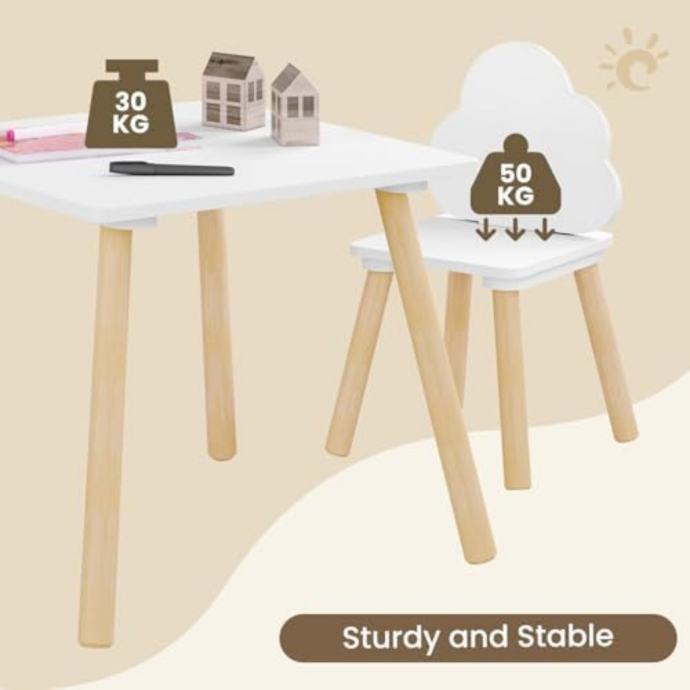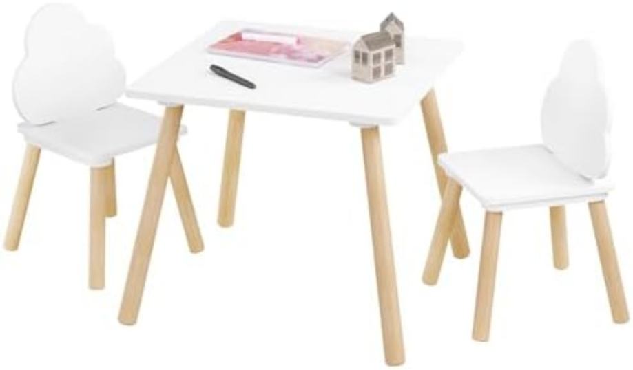 SG032ws Dječji set stola i stolica od 3 dijela Dječji stol s Montessori stolicama, drveni stol i 2 stolice za spavaću sobu, igraonicu, spavaću sobu, bijela