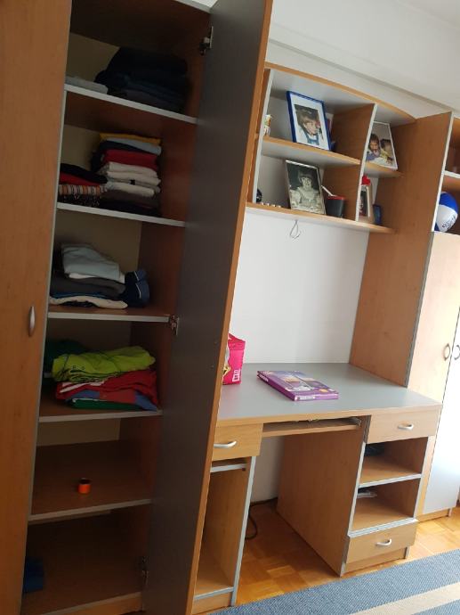 Prodajem povoljno mladenačku sobu s ormarima, stolom i policama. Ručni rad u odličnom stanju