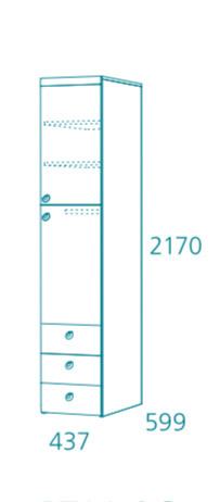 Sastoji se od kreveta 90x200 s dvije ladice, mosta s visećim elementom, jednostrukog ormara ( ladice i police), radnog stola sa dvije zidne police i otvorenog poličara.