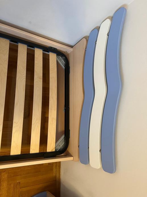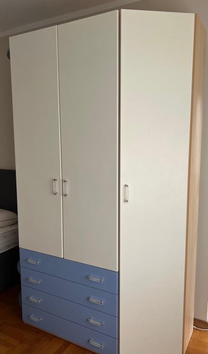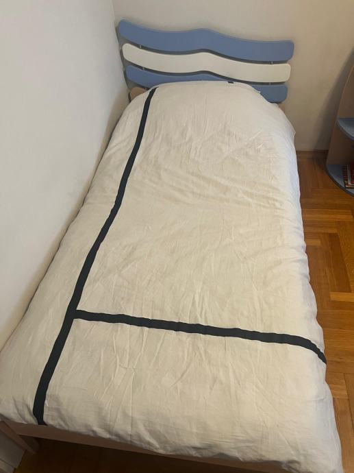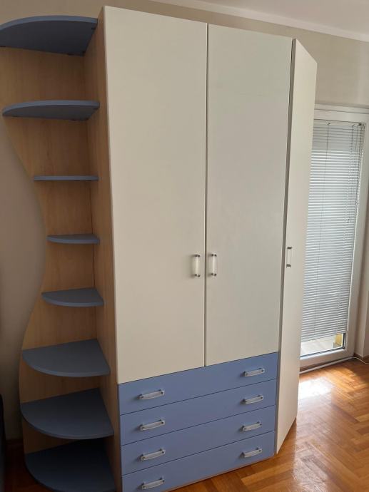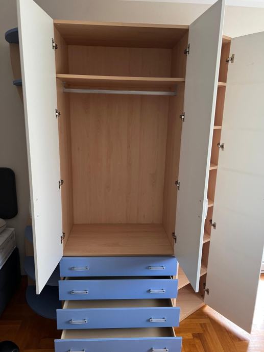 Komlet dječje sobe za dječake sastoji se od ormara, zidne police/kutije (2 kom) i kreveta. Soba je rastavljena i pripremljena za prijevoz. Uz krevet ide i madrac. Jedna stranicana krevetu je oštećena.