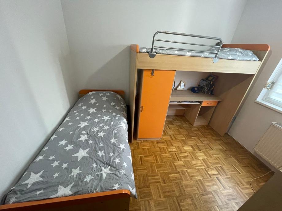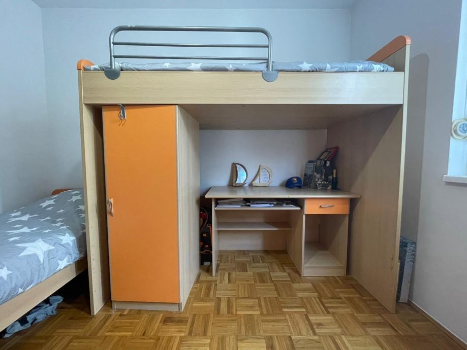 -dva kreveta zajendo sa podnicama (90×200cm) koji moju stajati zasebno ili jedan ispod drugog ;