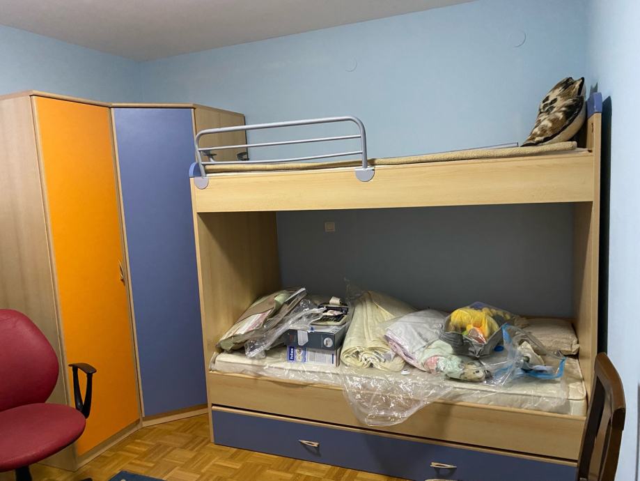 Prodajem dječju sobu Hespo u odličnom stanju koja se sastoji od: kreveta na kat, ogradom za krevet, ljestve, velika ladica za krevet, kutni ormar, dva jednokrilna ormara, ormar sa ugrađenim pisaćim stolom.