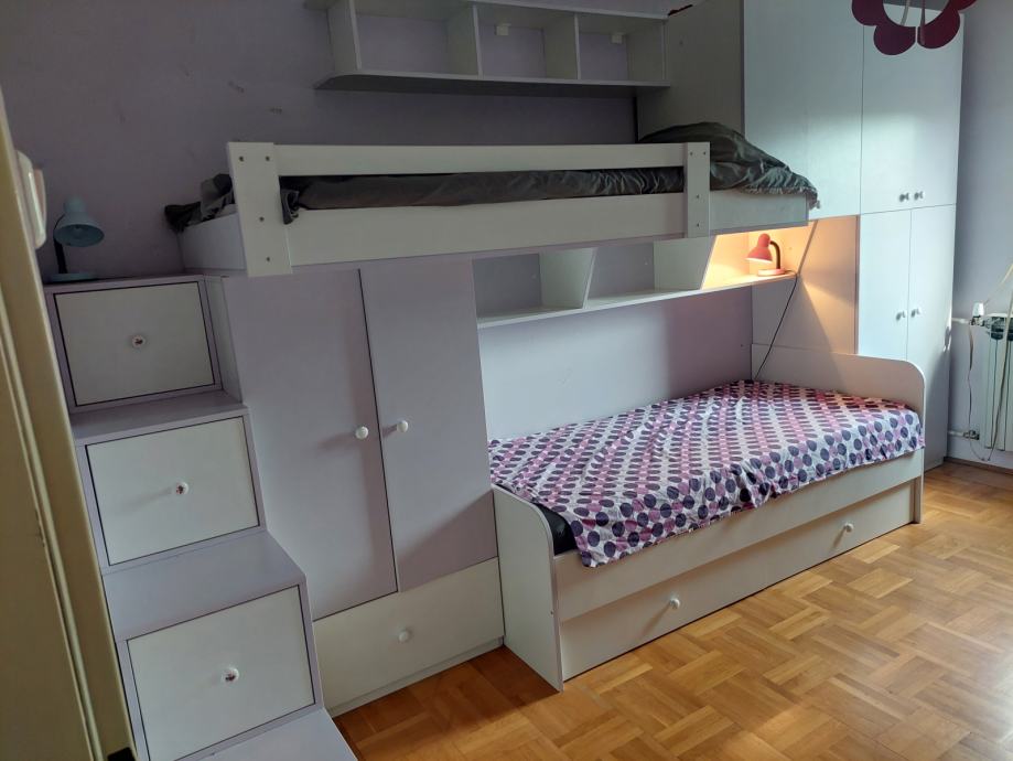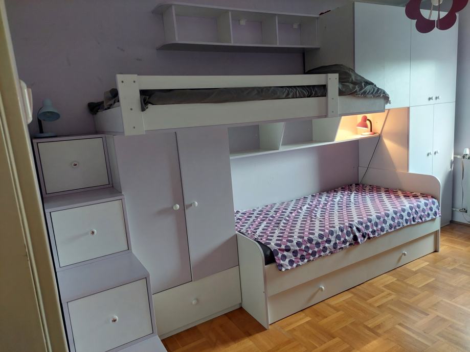 Komplet, kvalitetna izrada(stolar), puno prostora, bijelo-violet, 4 m duzine, dubina 80 cm