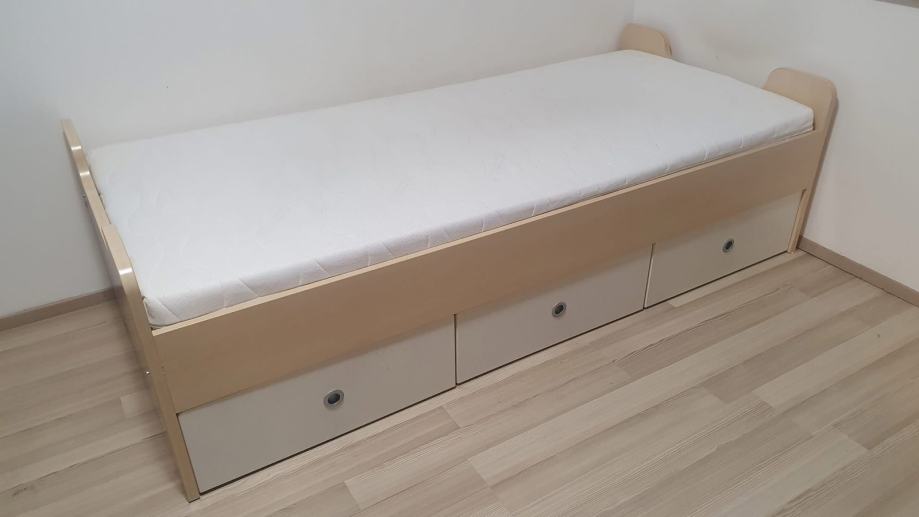 Prodajem namještaj za dječju sobu: krevet 90x200 s podnicom i madracem, ormar 90x56x197, polica s ladicama 48x37x197. Velo dobro očuvano, vidljivi manji tragovi korištenja. Krevet je rastavljen, dok su ormar i polica sastavljeni. Potrebno organizirati prijevoz.
