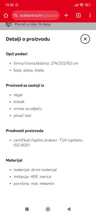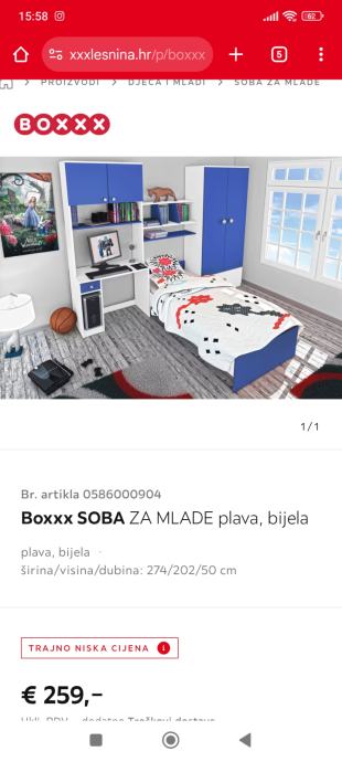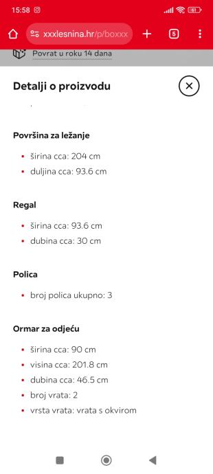 Ormar 2-krilni, krevet 90x200 s podnicom, radni stol/ormar i polica (nikad korištena)!