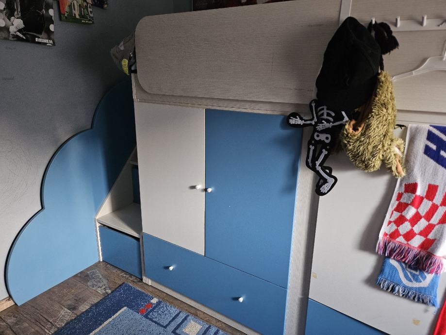 Komplet od 2 ormara, krevet i stepenice zajedno sa ukrasnim stranicama da može stajati bilo gdje u prostoriji - 350 eur
