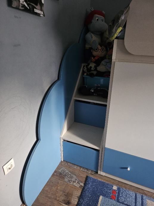 Mali princ, Iles Idria, naj dječje sobe, krevet 100×200cm, ispod 2 ormara visine 125 cm ( 2 velike ladice + 2 dvokrilna ormara sa 3 police ili šipka) i stepenice sa 2 ladice (donja na kotacice). Korišteno 6 god. Kupac mora organizirati prijevoz. Svaki dio je u komadu, nije demontiran.