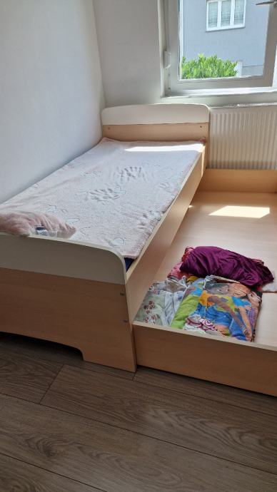Prodaju se Alples ormar (VxŠxD 218x133x65) i dječji krevet sa ladicama za dodatni ležaj.
